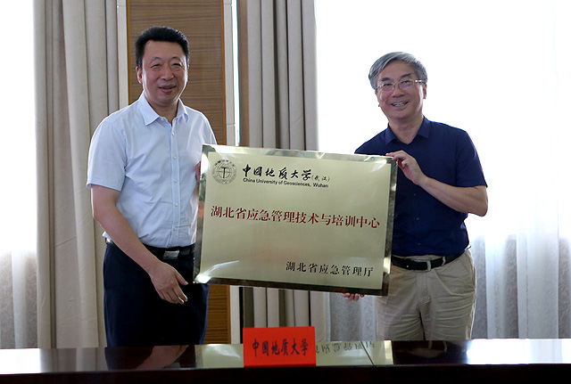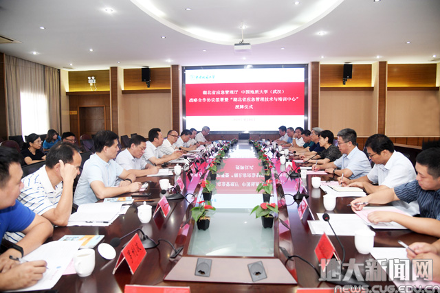 9月10日,我校与湖北省应急管理厅战略合作协议签署暨“湖北省应急管理技术与培训中心”授牌仪式举行。湖北省应急管理厅党组书记、厅长施政,省应急管理厅副厅长龚效峰、总工程师徐克,校党委书记黄晓玫,校长王焰新、副校长王华、党委副书记王林清,双方相关单位负责人参加了签约仪式。