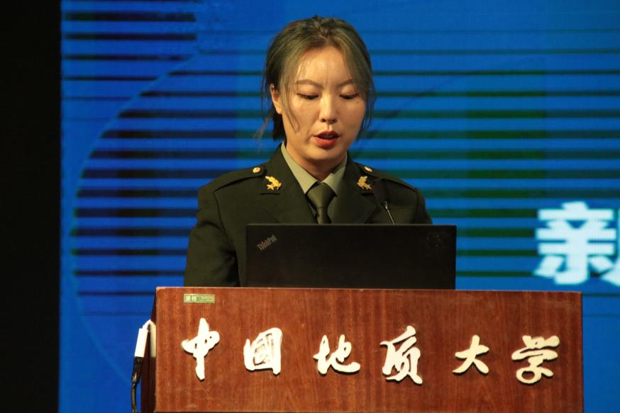 地质工程专业大三优秀学生代表刘丽琼发言。她分享了参军的成长经历,表示作为新时代青年,大学生更应为实现中国梦不懈奋斗,秉持“艰苦朴素、求真务实”的校训精神,潜心钻研专业、瞄准战略目标,在地质工程和人居安全领域贡献工程力量。