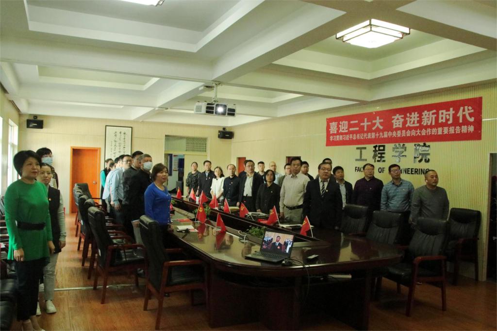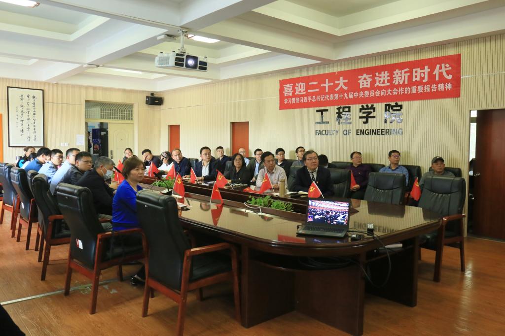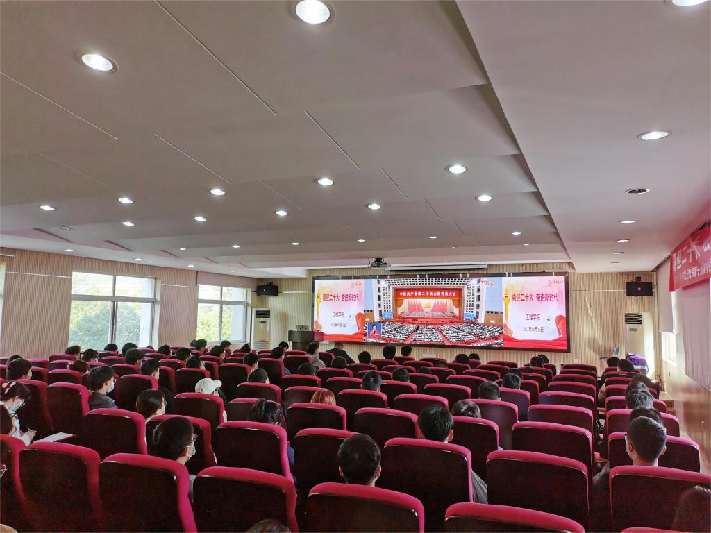 工程学院党委书记李红丽,院长焦玉勇,副院长王亮清、倪晓阳、章广成,院党委副书记高晓东,各教工党支部书记、主任,院直机关全体工作人员及辅导员在工程楼315集中收看,各系(中心)教工党支部在各系会议室集中收看,学生党支部、团支部代表在工程楼418报告厅集中收看,窦斌副院长及学院代表等在东区教学综合楼A0113集中收看,其他师生在各自宿舍、工作室、会议室等通过电脑、手机收听收看。