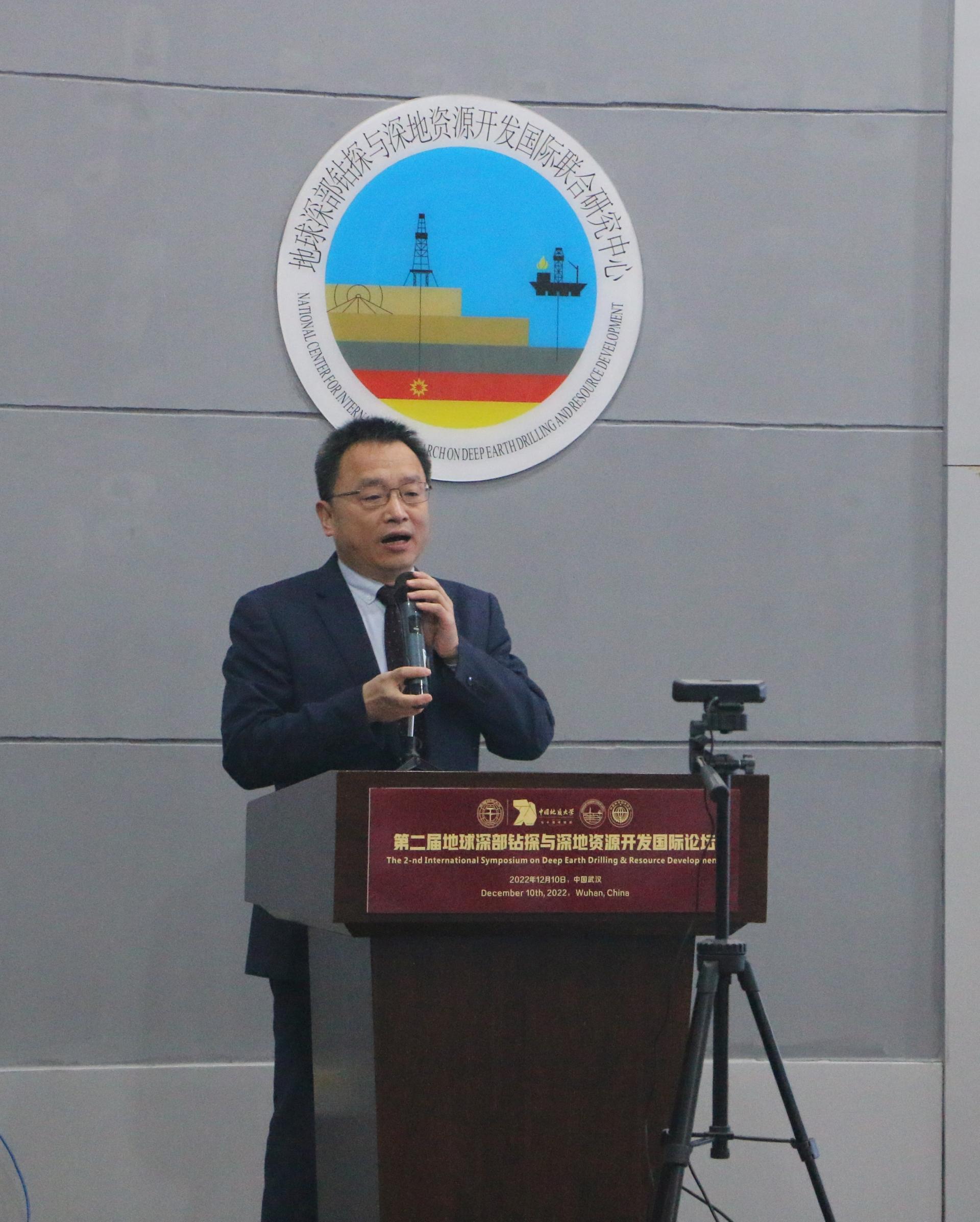 工程学院院长焦玉勇主持开幕式。他介绍了会议背景和主旨,欢迎专家学者聚焦“深部钻探与深地资源开发技术”这一主题展开交流。