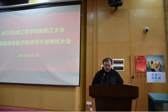 2023年3月2日下午,工程学院在教三楼109召开全院教职工大会,总结2022年度学院工作并部署2023年度重点工作。院领导班子、全院教职工及学生代表参加会议,会议由学院党委书记李红丽主持。