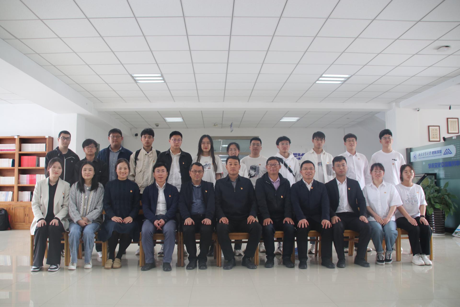 4月13日,师生一行来到西北工业大学材料学院进行调研交流,座谈会由西北工业大学材料学院党委副书记蔡利剑主持。第三批全国党建工作样板支部培育创建单位、碳材料师生融合党支部书记贾瑜军、副书记赵元肖教工党员费杰、学生党员代表,学院办公室主任张艳梅,学生辅导员张曦参会。