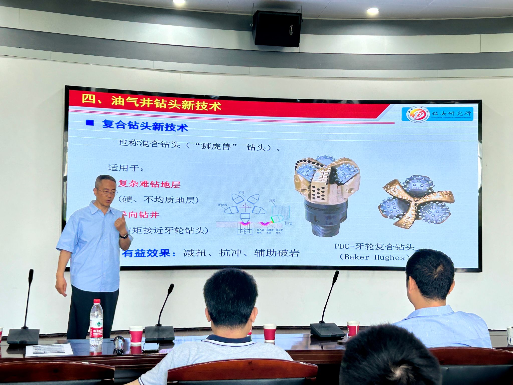 杨迎新教授作了题为“超深钻井破岩技术挑战与钻头新技术探讨”的学术报告。报告从介绍西南石油大学钻头研究所关于PDC钻头新技术成果展开,指出超深钻井面临的破岩技术挑战,针对复杂难钻条件下的前沿钻头新技术研究探讨。报告概述研发钻头技术的重要性,引出了不同系列的PDC钻头及其适用工况,简述了钻头技术面临的挑战;重点介绍了油气井钻头前沿新技术,针对性地提出了未来发展建议:应该加强金刚石切削齿设计、制造技术研发。报告对提高复杂难钻条件下的钻头性能有重要指导意义。