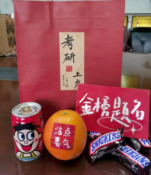 交流中,老师们带着“金榜题名”的祝愿为同学们送上一份份学院精心准备的礼物——寓意“心想事成”的橙子、代表“运气旺旺”的旺仔牛奶、蕴含“满满能量”的士力架。现场氛围热烈温暖,同学们深受鼓舞,纷纷表示,将不负众望,以更加坚定的信念和更加从容的态度,迎接即将到来的考试。