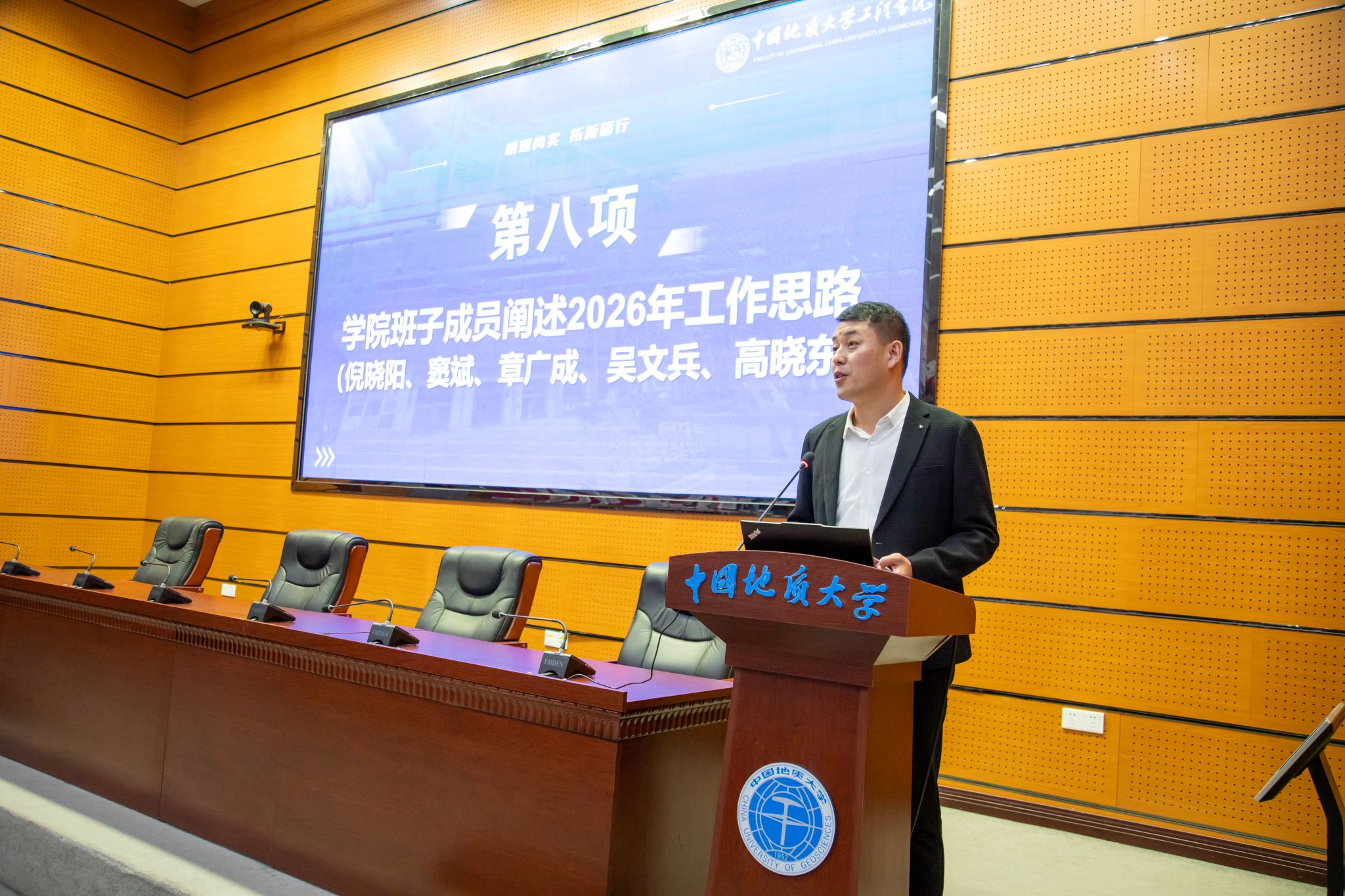 (通讯员 方长亮)2026年1月8日下午,工程学院第六届教职工大会第二次会议暨第六届工会会员大会第二次会议在南望山校区东区教学综合楼A0113会议室隆重召开。党委书记杨昌锐同志主持大会,全院教职工齐聚一堂,围绕“明理尚实 拓新砺行——为建设地质工程与人居安全领域特色鲜明、享誉国际的一流研究型学院而接续奋斗”主题共绘发展蓝图,圆满完成各项议程。