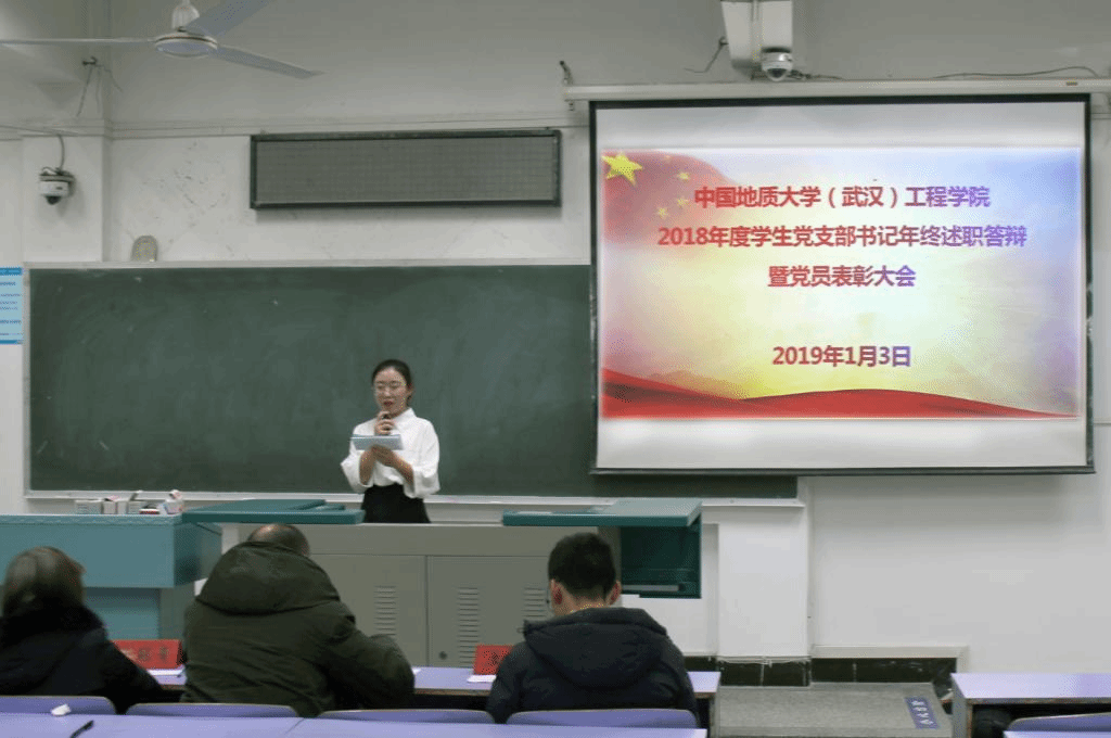 2019年1月3日晚,工程学院2018年度学生党支部书记年终述职答辩暨党员表彰大会在教三楼201和207教室成功举行。