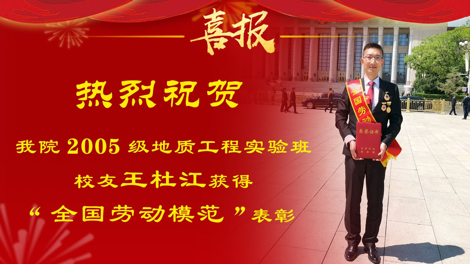 热烈祝贺孙红林与王杜江两位校友获得“全国劳动模范”表彰